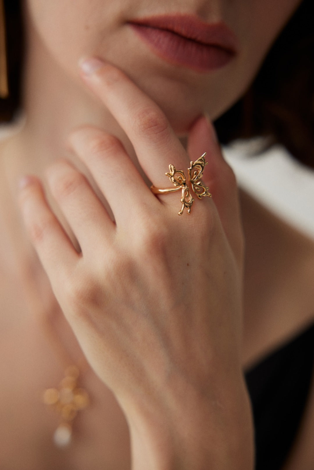 This thoughtfully designed ring sways gently with your movement, evoking the graceful dance of butterflies in bloom.